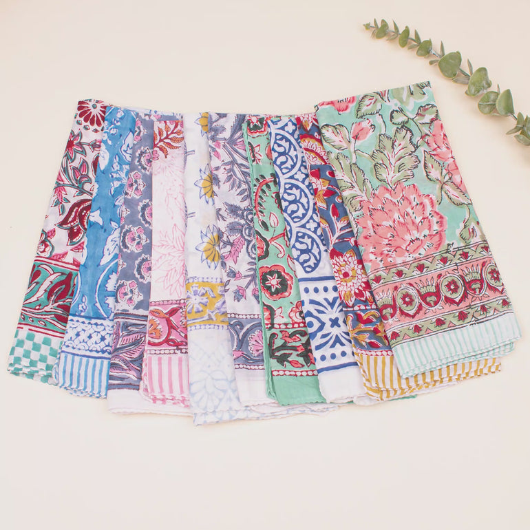Set of 10 - Vintage Style Boho Neck Scarf, Ethnic Hand Block Printed Bandana, Soft Cotton Bandana, Sustainable Bandana For Men & Women