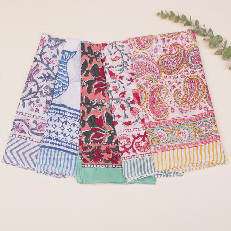 Check out this set of 5 colorful block-printed cotton bandanas. These bandanas are perfect if you want something stylish, effortless & comfy, and they’re great whether you’re a man or a woman. It’s a colorful, eco-friendly, long-lasting little set that’s super versatile and great for everyday outfits, pets, and bike rides, or just adding a pop of personality to your look. Handmade bandanas are made from breathable & lightweight cotton fabric that feels ethnic & charming. Plus, they actually get softer every time you wash them.