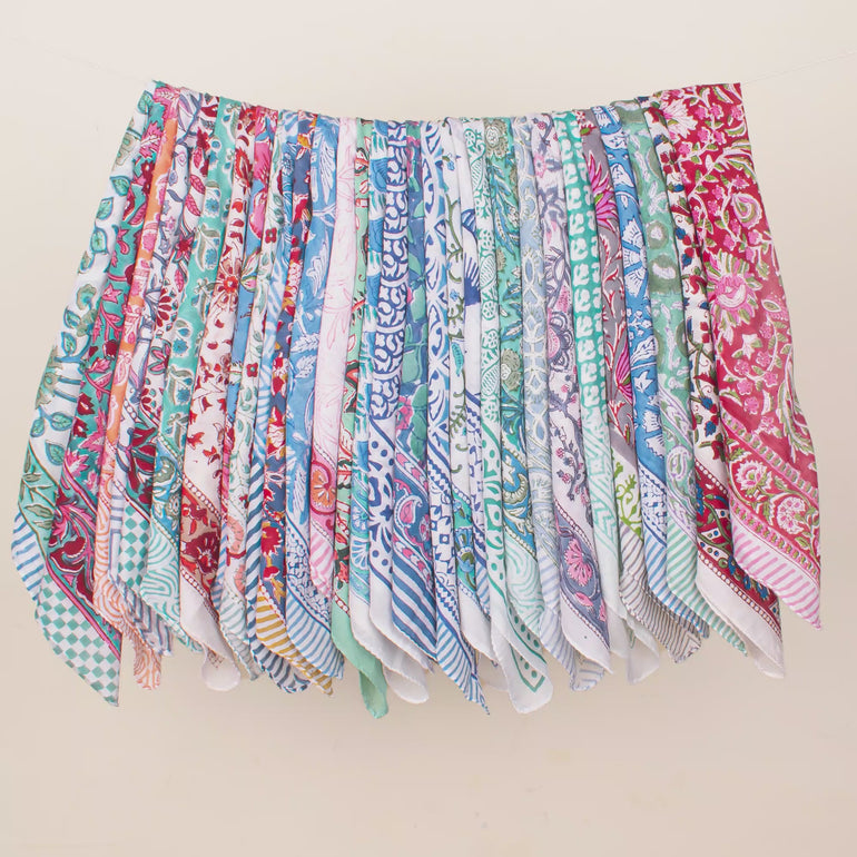 This Set of 75 - Cotton Bandana, Hand Block Printed Floral Wrap all made by cotton material and hand with block prints technique. These Block Printed Bandanas are handy for daily outfit, gifting, or even bike ride. Nothing fancy—just cotton work made with effort. Every piece is a little different, not the same like machine cloth. The cotton is totally organic and lightweight, so you can wrap around your neck, tie it on your head, or just keep it as a scarf and also you can use this Handmade Bandana for a longtime.